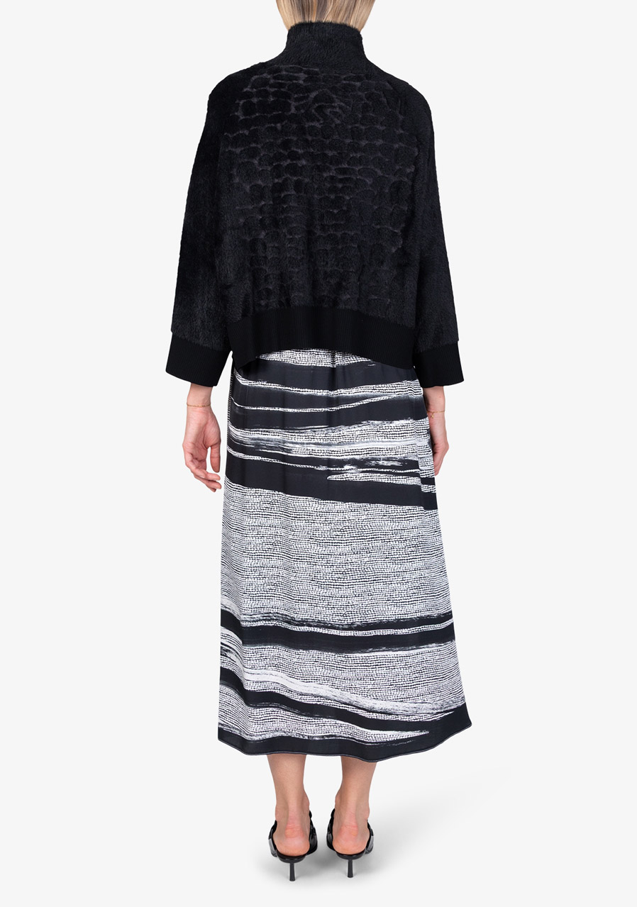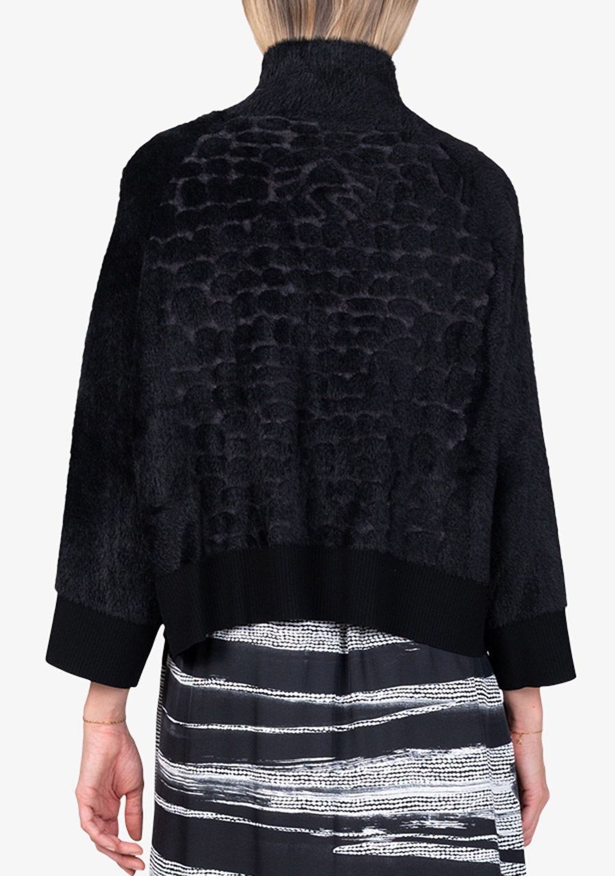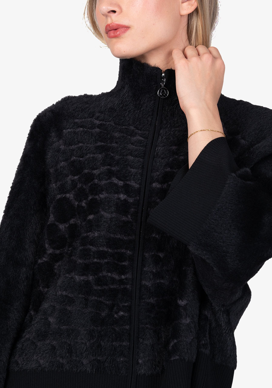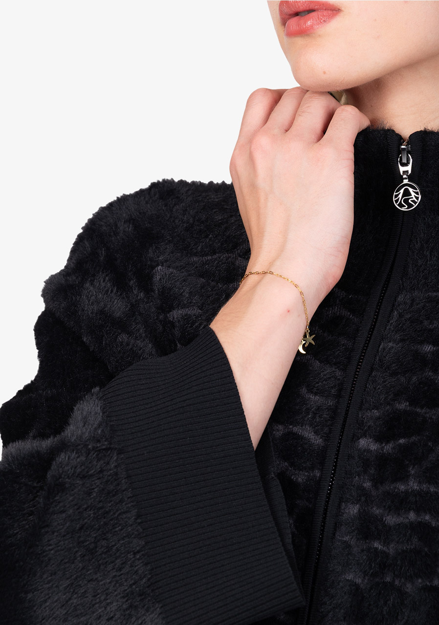 Hlavní prvky: jemné žebrování ve spodní části a na rukávech, měkký povrch s efektem kožešiny