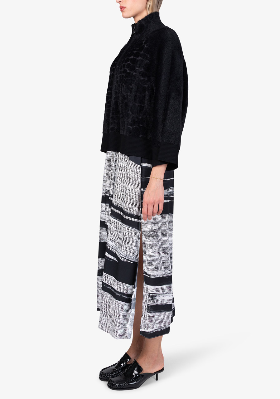 Tento extravagantní svetr s hebkým kožešinovým vzhledem a výrazným krajtovým vzorem dodá vašemu outfitu moderní a sebevědomý styl. Jeho ležérní střih v kombinaci s příjemným materiálem nabízí nejen styl, ale i pohodlí při každodenním nošení.