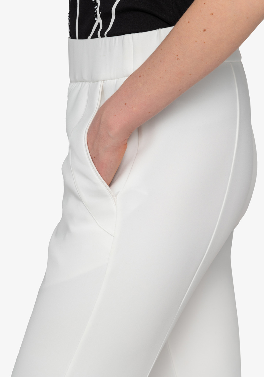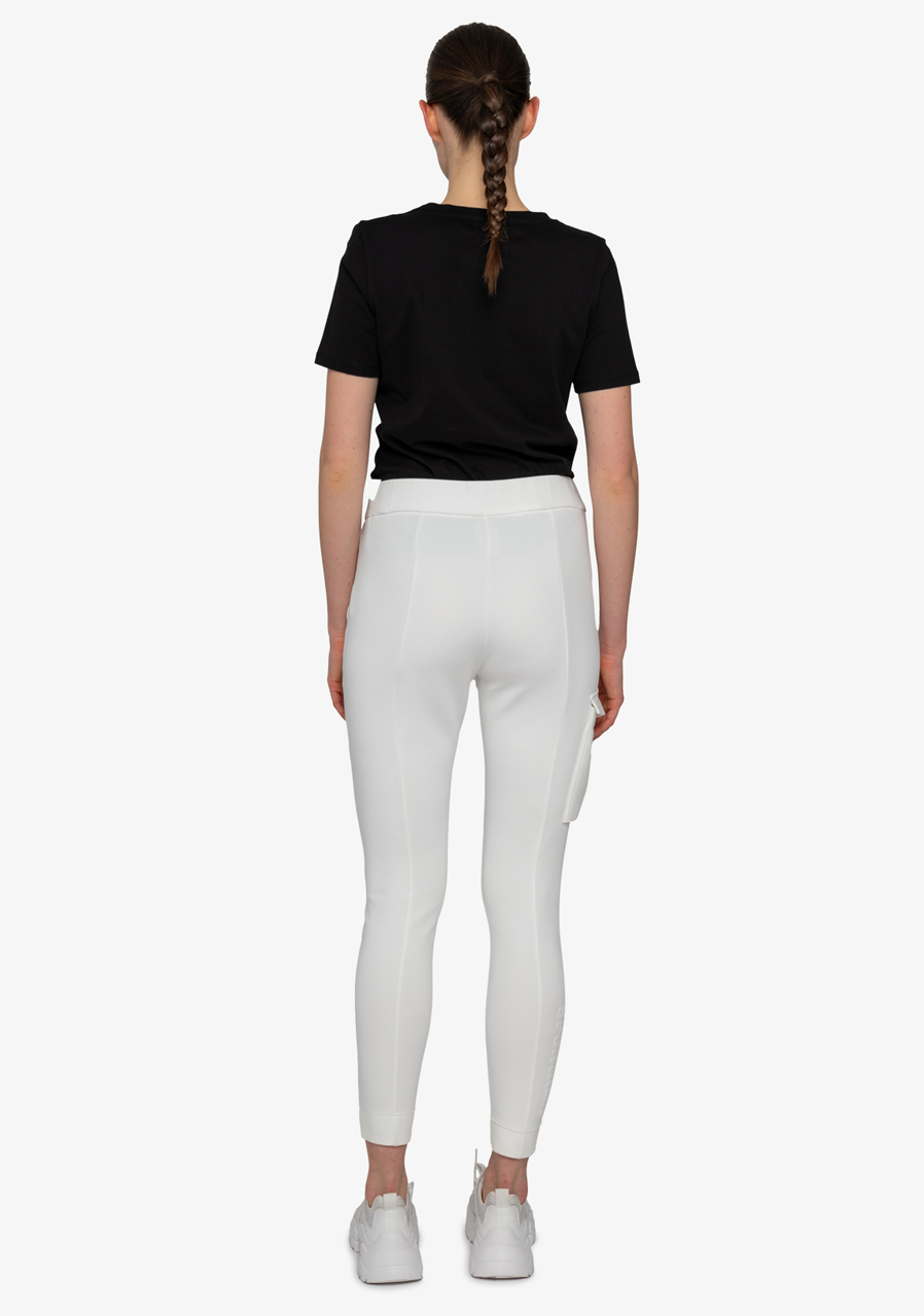 Materiál: 84% polyester, 16% elastan Směs materiálů zajišťuje pohodlí, pružnost a odolnost. Délka vnitřního švu u velikosti 36: 72 cm Další parametry: Úzké nohavice, moderní střih zajišťuje elegantní a ležérní vzhled. Kapsy na ruce s kontrastním lemováním dodávají praktický prvek a stylové kontrastní provedení. Našitá boční kapsa ozdobená mírně řasenou látkou a klopou s 3D logem dodává kalhotám sportovní nádech. Elastický pas poskytuje pohodlné nošení během celého dne. Reliéfní logo Sportalm na zadní straně nohavice podtrhuje unikátní design. Tyto kalhoty jsou ideální jak pro každodenní nošení, tak pro volnočasové aktivity, kdy chcete vypadat stylově a cítit se pohodlně.