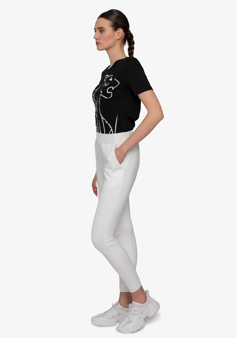 Dámské joggingové kalhoty Sportalm nabízejí kombinaci stylu a pohodlí, které oceníte každý den. S úzkými nohavicemi a elastickým pasem zajišťují maximální komfort při nošení, zatímco detaily jim dodávají jedinečný vzhled.