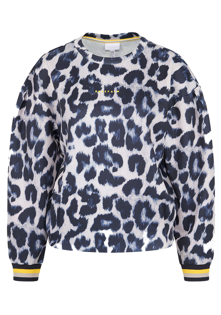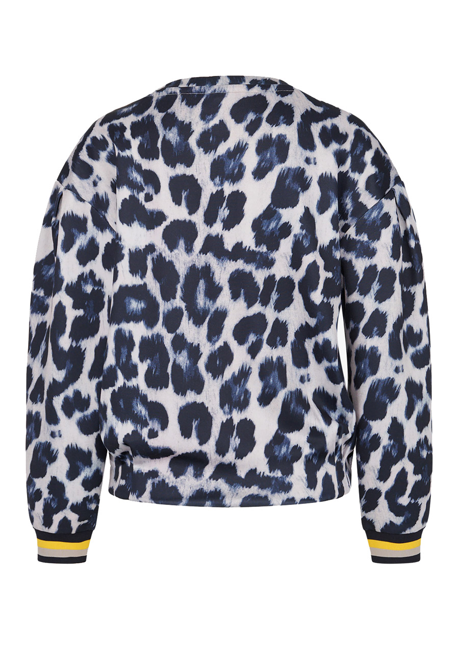 Vzor: leopardí Střih: rovný Styl: módní, sportovní Výstřih: kulatý Rukávy: dlouhé rukávy s žebrovanými manžetami a záhyby na spadlém rameni Zvýraznění: lem se záhyby na boku