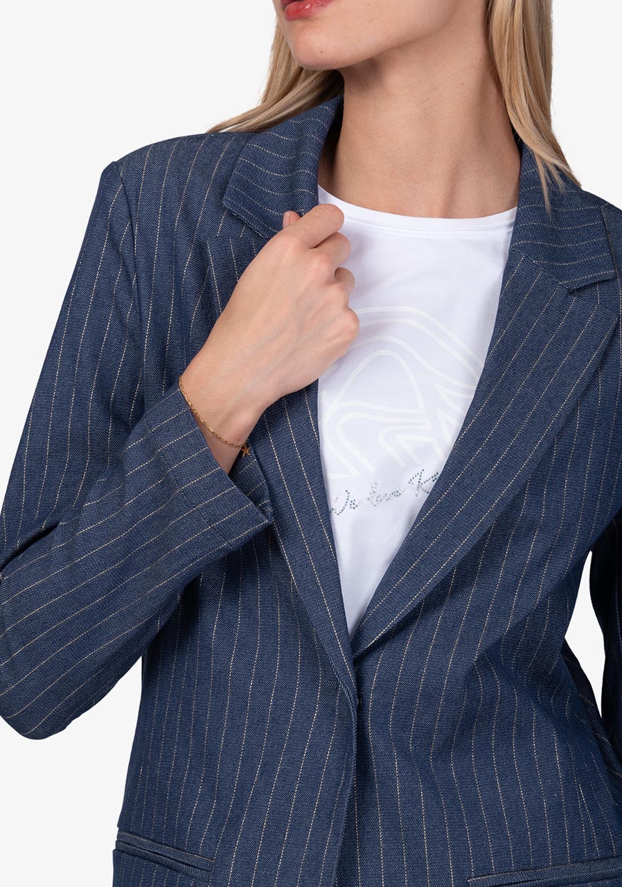 Dámské sako Sportalm Tamia v tmavě denimové barvě představuje moderní kombinaci elegance a ležérního stylu. Díky svému preciznímu střihu a kvalitnímu zpracování působí sofistikovaně, ale zároveň pohodlně. Hodí se jak k ležérním outfitům s džíny, tak i k elegantnějším kombinacím, a proto se stane univerzálním kouskem ve vašem šatníku.