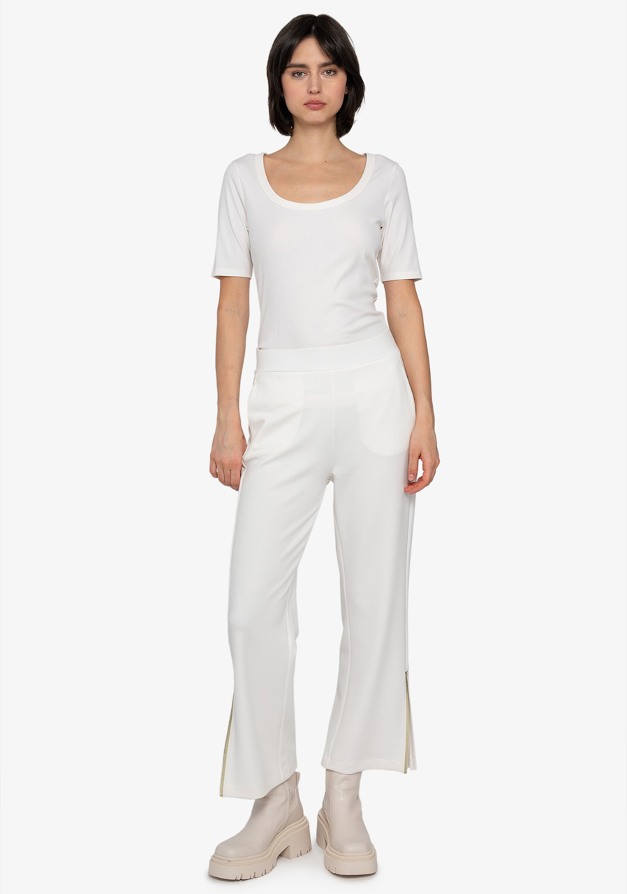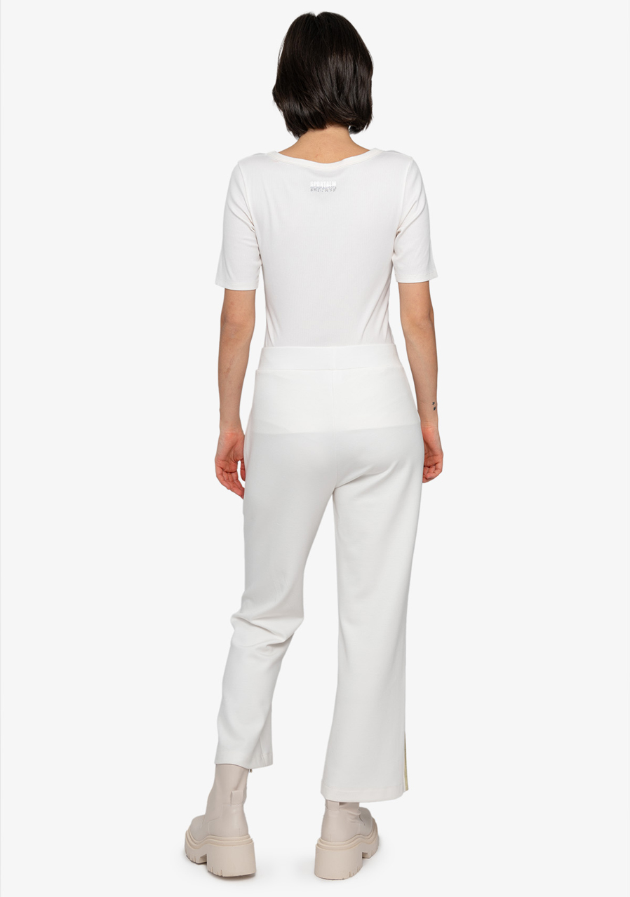 Elegantní a pohodlné dámské kalhoty od značky Sportalm jsou ideální volbou pro ty, kdo hledají kombinaci stylu a komfortu. Vyrobené z kvalitního modalového materiálu, tyto kalhoty se skvěle přizpůsobí vašemu tělu a nabídnou výjimečný pocit pohodlí při nošení. Měkký elastický pas umožňuje snadné oblékání a pohodlné nošení po celý den. Praktické boční kapsy, skryté ve švu, poskytují dostatek prostoru pro drobnosti, zatímco módně široká nohavice dodává kalhotám moderní a uvolněný vzhled.