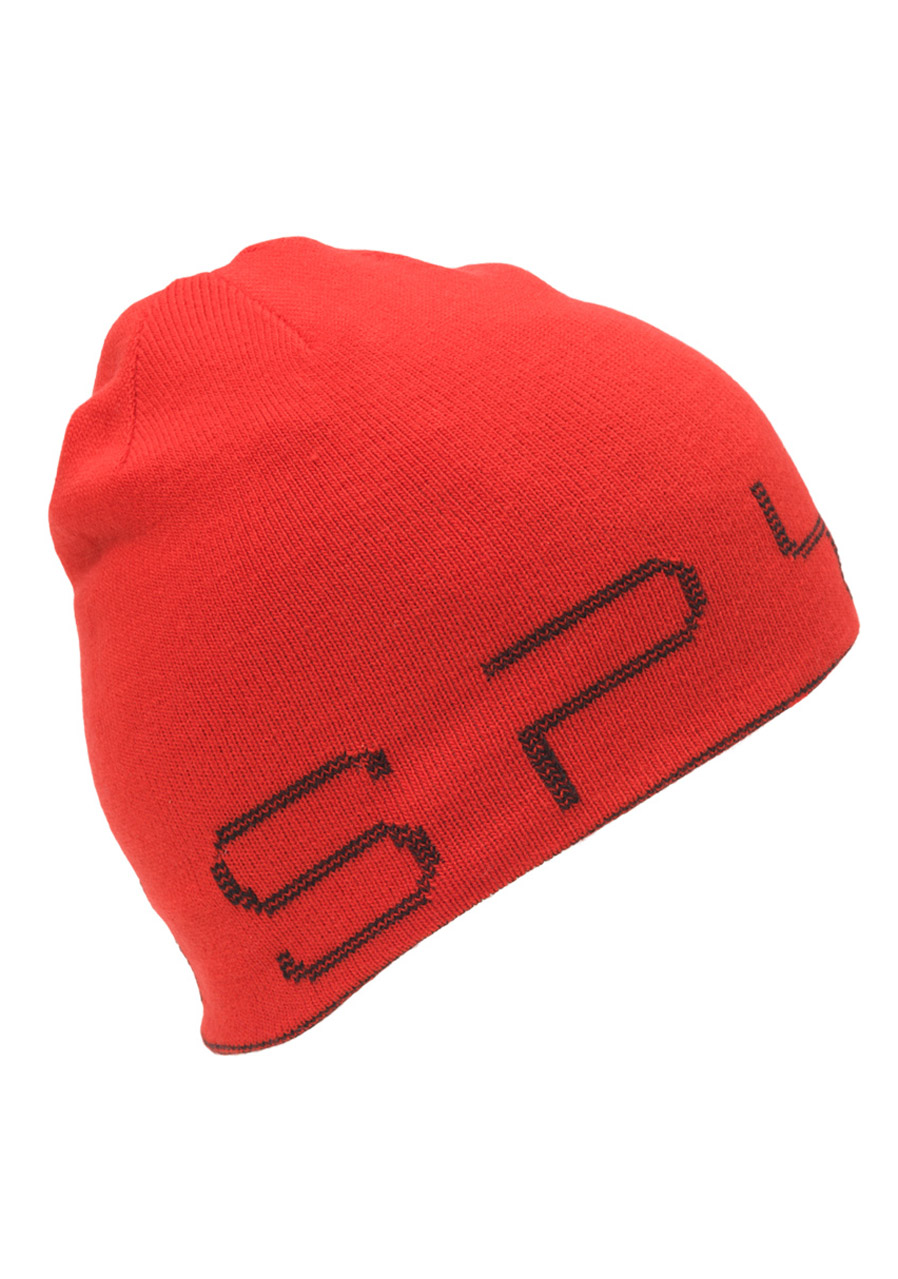 - dětská pletená čepice s velkým vetkaným nápisem a logem Spyder
