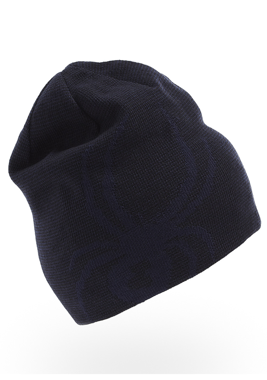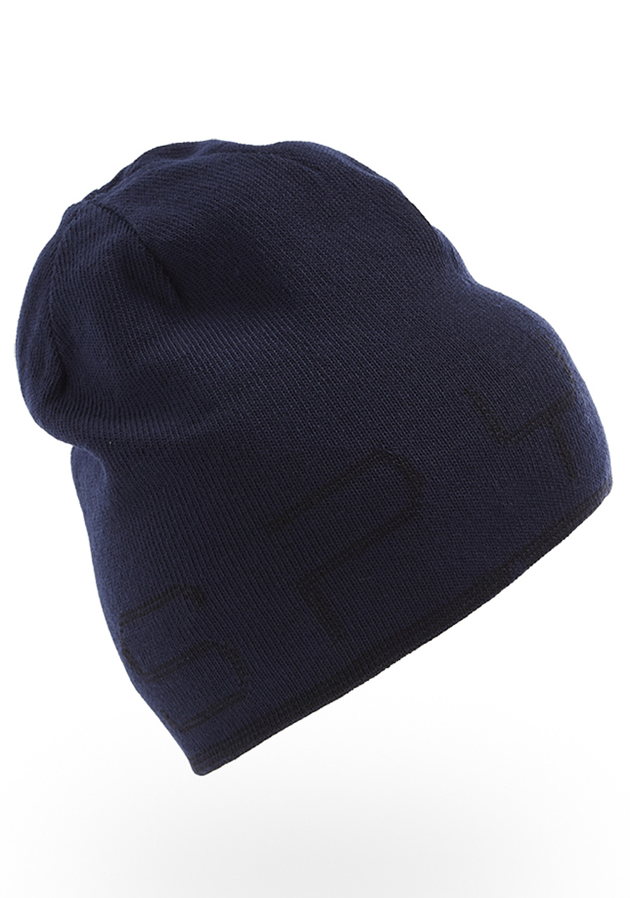 - dětská pletená čepice s velkým vetkaným nápisem a logem Spyder