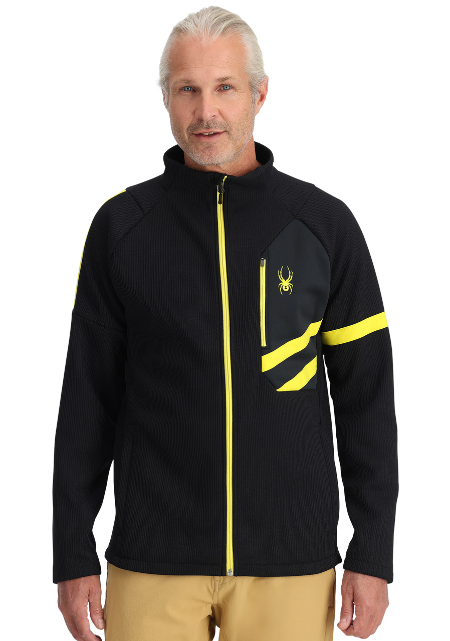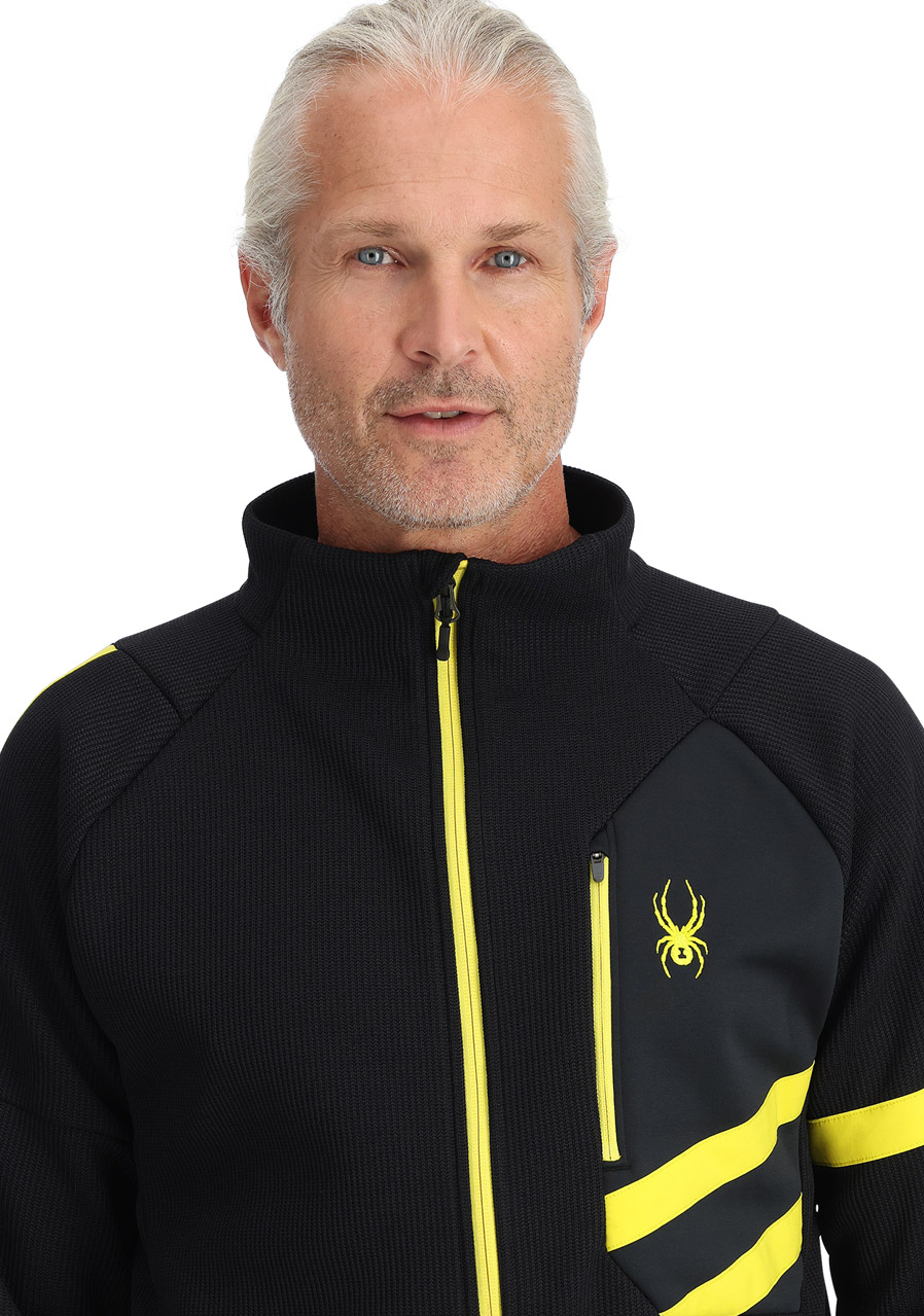 Pánský svetr Spyder Men Wengen Bandit Jacket v černé barvě je ideální kombinací klasického alpského stylu a moderní funkčnosti. Tento lehký polyesterový svetrový úplet spojený s fleecem proti žmolkování zaručuje maximální komfort a odolnost, ať už jste na horách nebo v kanceláři. Svetr má elegantní náprsní kapsu na zip, která dodává nejen styl, ale také praktičnost.