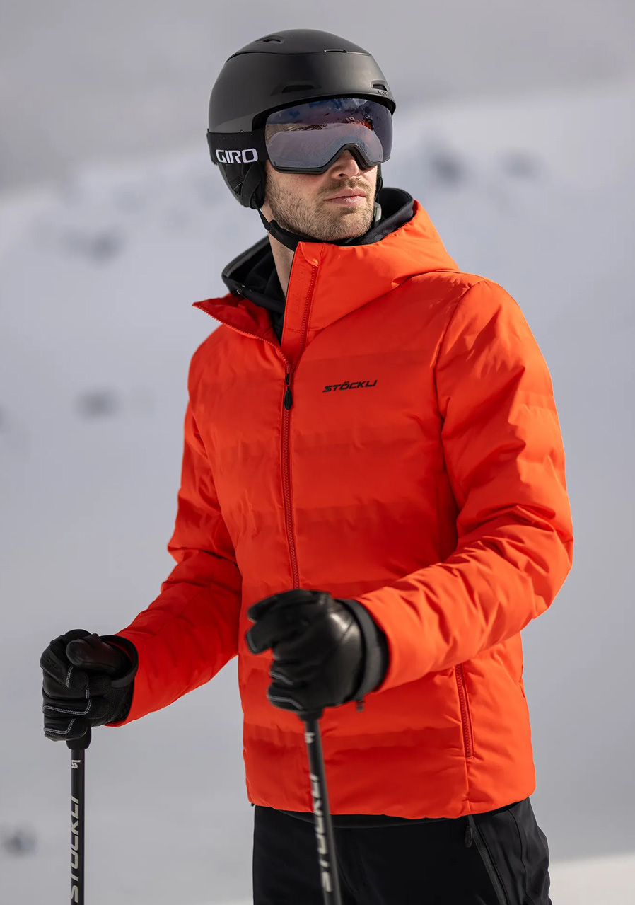 Pánská lyžařská bunda Stöckli Skijacket HE Urban v oranžové barvě kombinuje špičkovou funkčnost s výrazným designem. Díky použití materiálu Maxland® s membránou MaxAlientoTM zajišťuje bunda skvělou ochranu proti vlhkosti s voděodolností až 15 000 mm a prodyšností až 15 000 g/m²/24 h. Izolace PrimaLoft® Cross CoreTM poskytuje optimální teplotní komfort i v těch nejchladnějších dnech. Ergonomický střih v regular fit zaručuje pohodlí při pohybu.