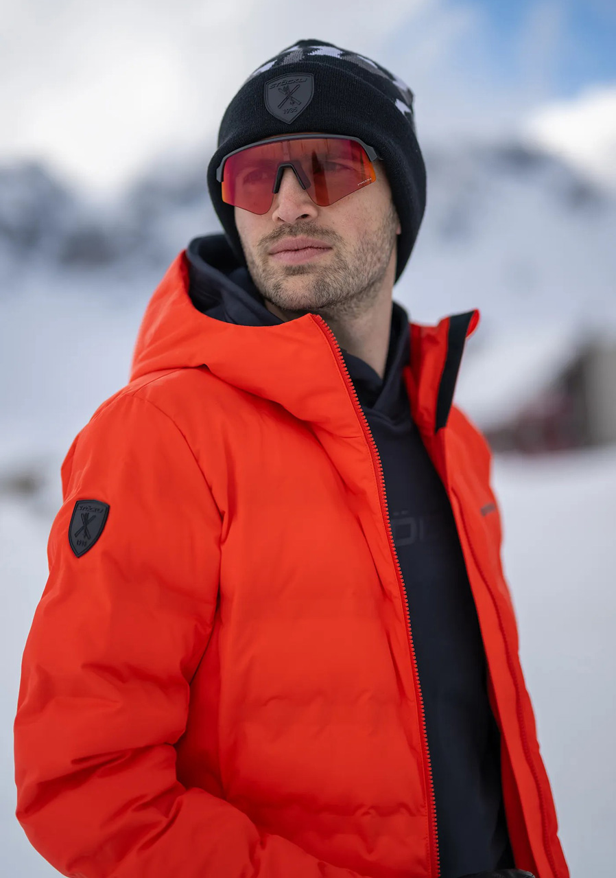 Materiál: 100% polyester Výplň: PrimaLoft® Cross CoreTM (100% polyester) Podšívka: 2-way stretch (100% polyester) Vodní sloupec: 10.000 mm - 15.000 mm Prodyšnost: 10.000 g/m²/24h - 15.000 g/m²/24h Střih: Regular fit Další parametry: 3D logo Stöckli vpředu a na kapuci. Odznak „od roku 1935“ na pravém nadloktí. Kapsa na mobilní telefon na zip. Elegantní tkaný vnitřní štítek Stöckli. Úložný prostor na štítky s pokyny k údržbě. Ergonomický střih pro pohodlné nošení na svahu i mimo něj. Tato oranžová bunda je ideální volbou pro ty, kteří hledají kombinaci funkčnosti, tepla a stylu. S moderním vzhledem a technologiemi je připravena na vaše lyžařské dobrodružství.
