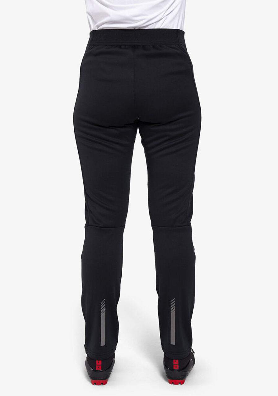 Vysoký elastický pas s vnitřní stahovací šňůrkou zajišťuje pohodlné a bezpečné usazení. Praktické kapsy na zip poskytují úložný prostor pro drobnosti, zatímco dlouhé zipy na nohavicích až po kolena umožňují snadné oblékání přes boty. Díky reflexním detailům budete dobře viditelní i za zhoršených světelných podmínek. Tyto kalhoty jsou ideální volbou pro běžecké lyžování, trénink i aktivní pohyb v zimní přírodě.