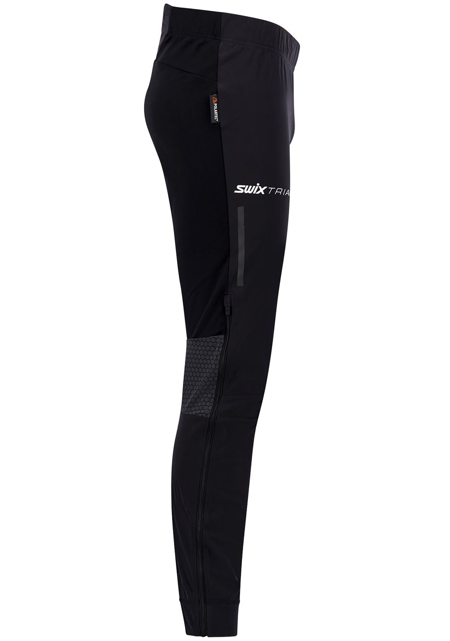 Díky tenkému sportovnímu střihu a tvarovaným kolenům kalhoty poskytují přirozenou volnost pohybu. Elastický pas s vnitřní stahovací šňůrkou zajišťuje perfektní přizpůsobení postavě, zatímco zadní kapsa na zip YKK bezpečně uloží drobnosti. Reflexní detaily a potisknuté logo zvyšují viditelnost i styl. Tyto kalhoty představují vrchol funkčnosti a technického zpracování, ideální pro trénink i závodní využití.