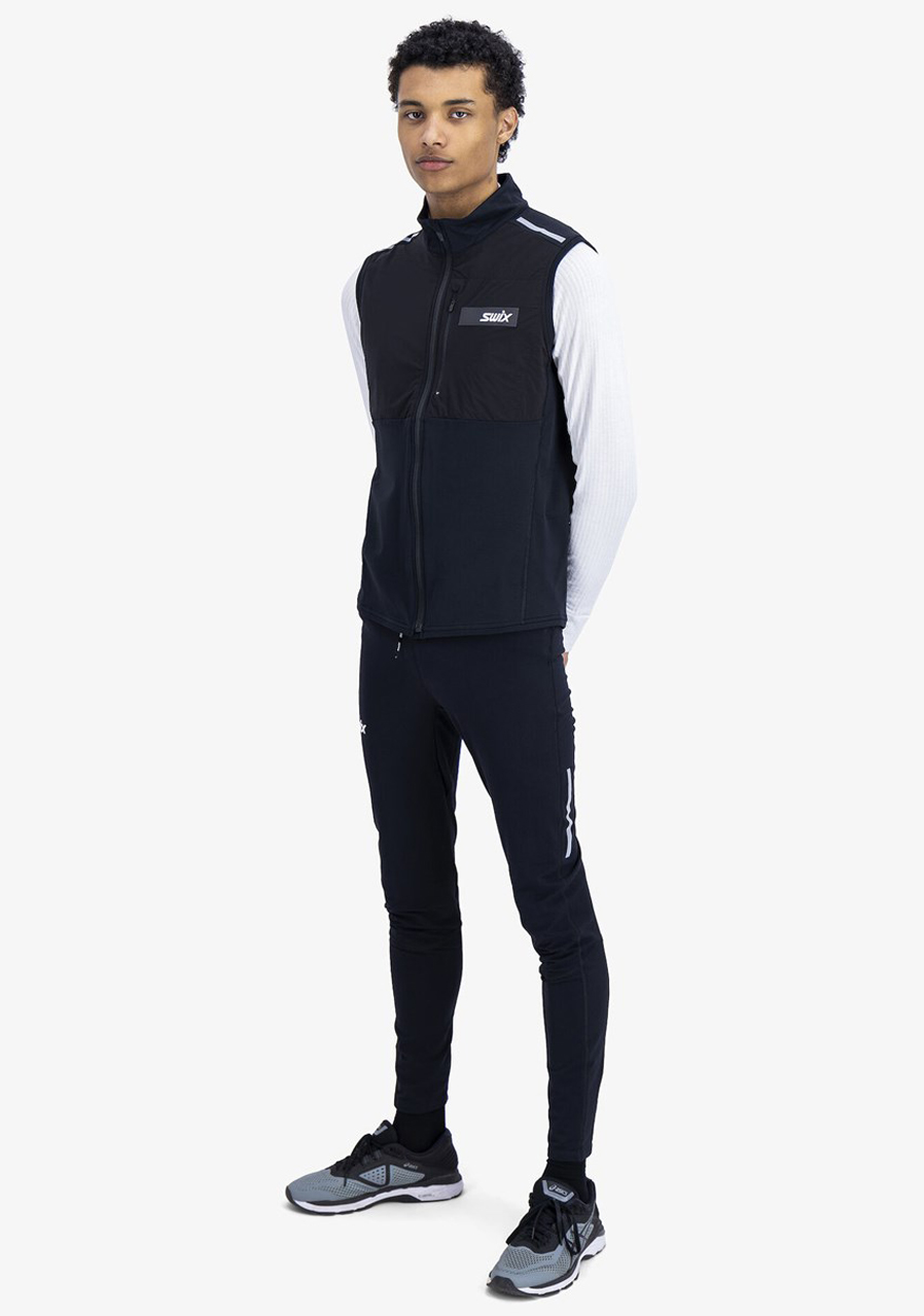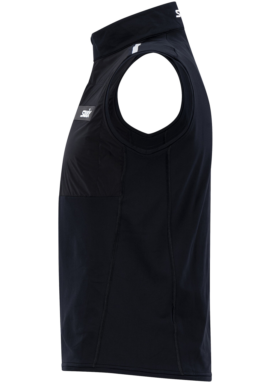 Pánská vesta Swix Focus Warm 11211-10000 je všestranná strečová vesta, která nabízí skvělou kombinaci funkčnosti a komfortu. Je navržena tak, aby byla vhodná jako střední vrstva pod bundu nebo jako vrchní vrstva v mírnějších podmínkách. Rychleschnoucí panel na hrudi zajišťuje lepší regulaci teploty při intenzivní aktivitě. Vesta je vybavena praktickou náprsní kapsou na zip a reflexními prvky pro vyšší bezpečnost. Česaná vnitřní strana poskytuje příjemný pocit na těle a vyšší límec chrání před větrem.
