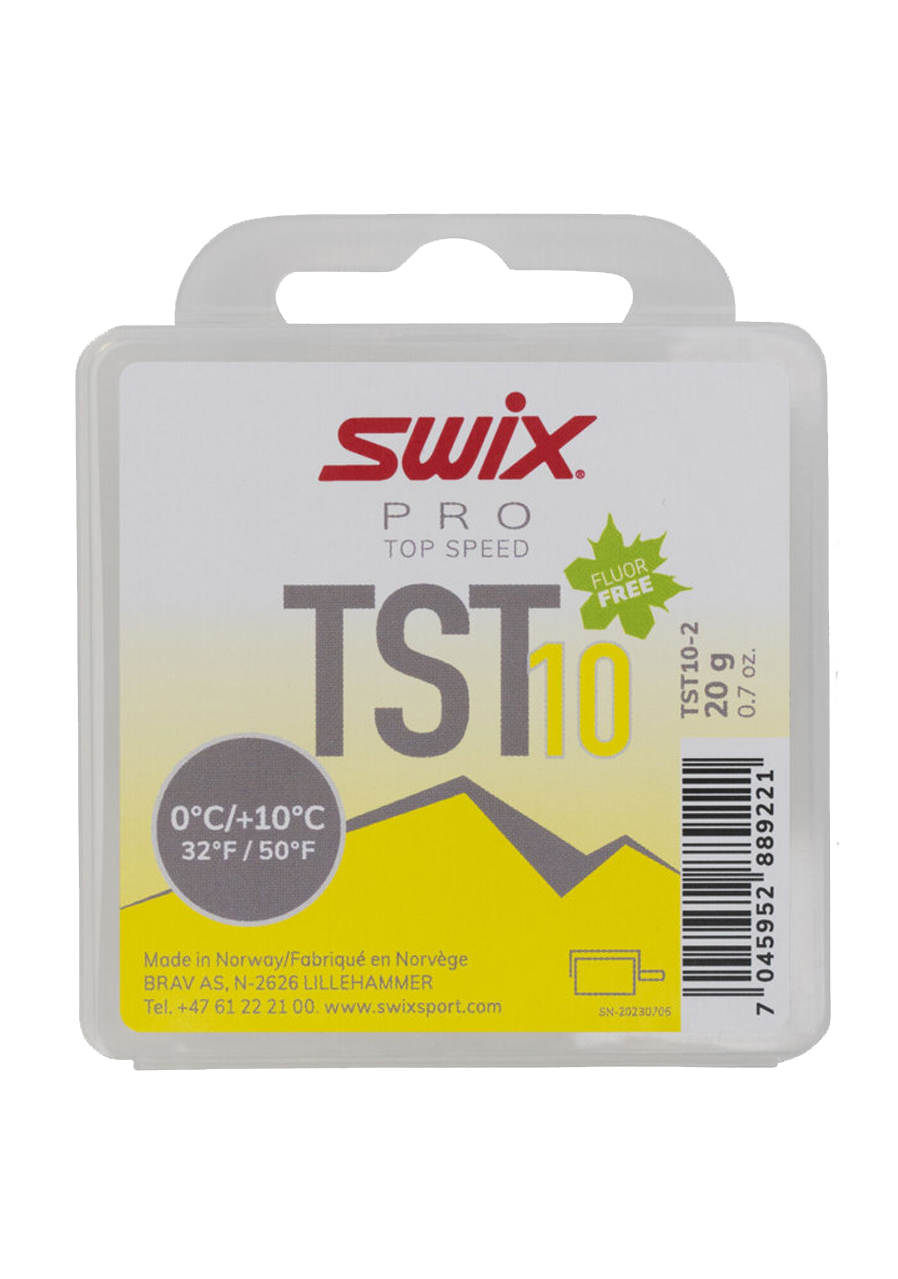 Swix TST10-2 Top Speed Turbo je vysoce výkonný závodní skluzný vosk určený pro teplotní rozsah od 0°C do +10°C. Je ideální pro mokrý a znečištěný sníh, což z něj činí optimální volbu pro jarní lyžování.