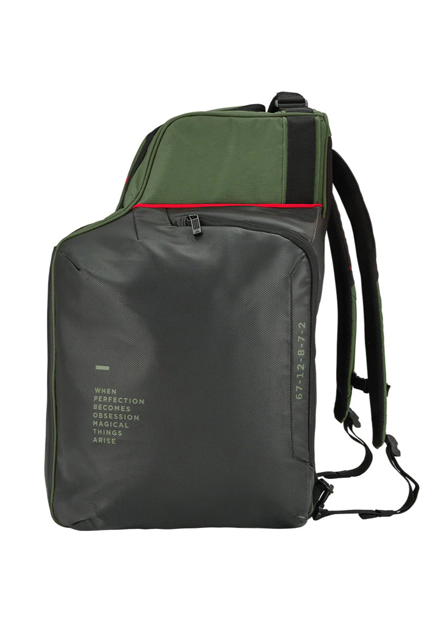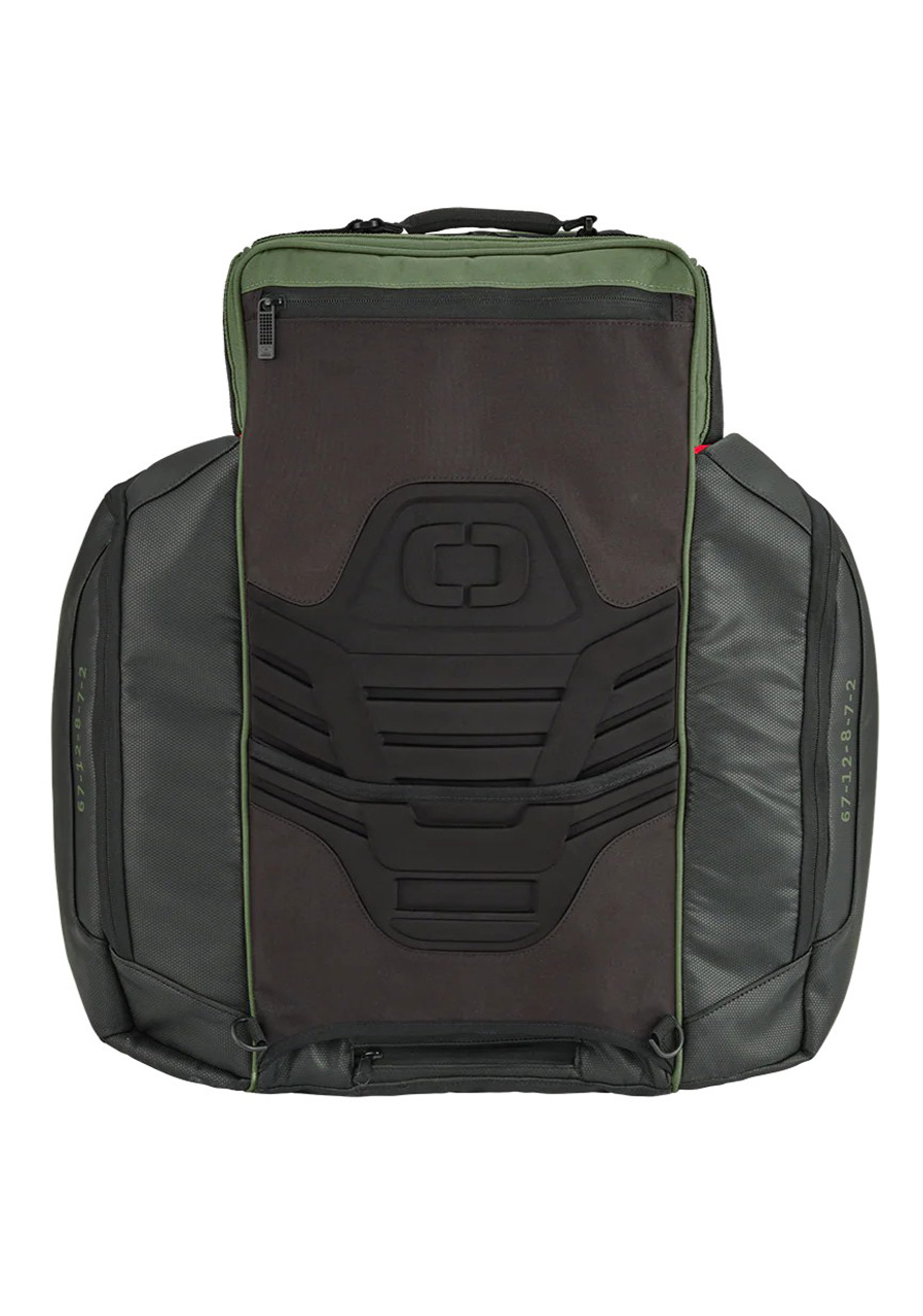 Detaily: prostorné hlavní oddělení, oddělené kapsy na boty, helmu a příslušenství, polstrovaná záda, nastavitelné ramenní popruhy, odolné zipy