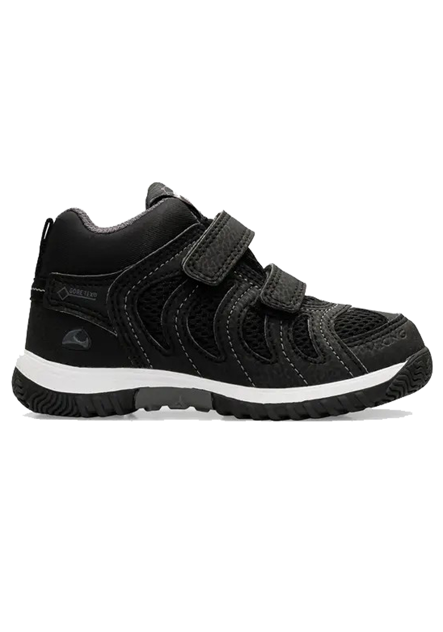 Dětské trekové boty Viking Cascade Mid III GTX v univerzálním černém provedení Black jsou ideální volbou pro aktivní děti, které rády objevují přírodu za každého počasí. Lehká, ale odolná konstrukce v kombinaci s voděodolnou a prodyšnou GORE-TEX® membránou zajišťuje suché a pohodlné nošení po celý den – ať už na výletě, ve škole nebo při každodenním nošení.