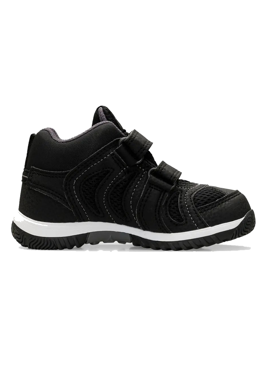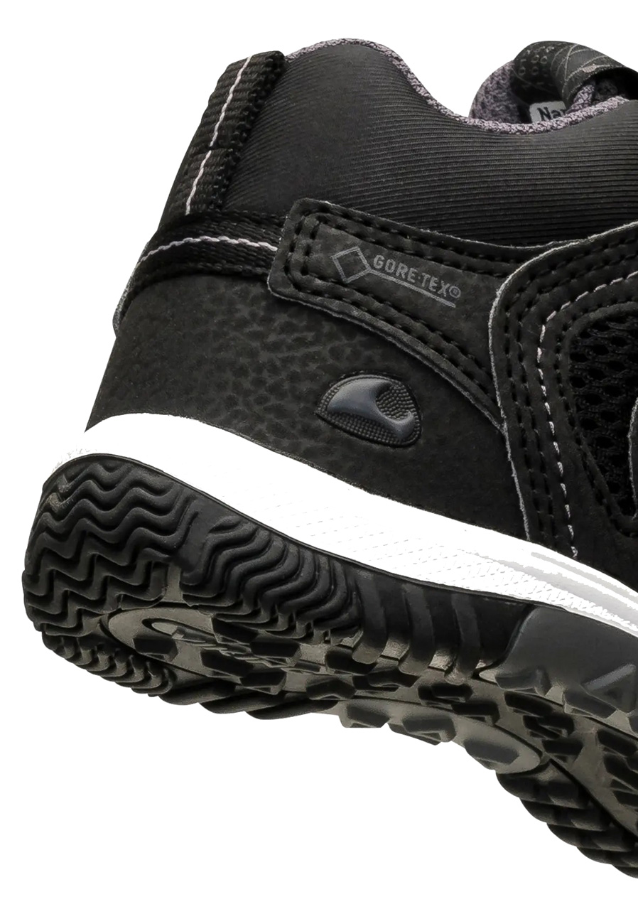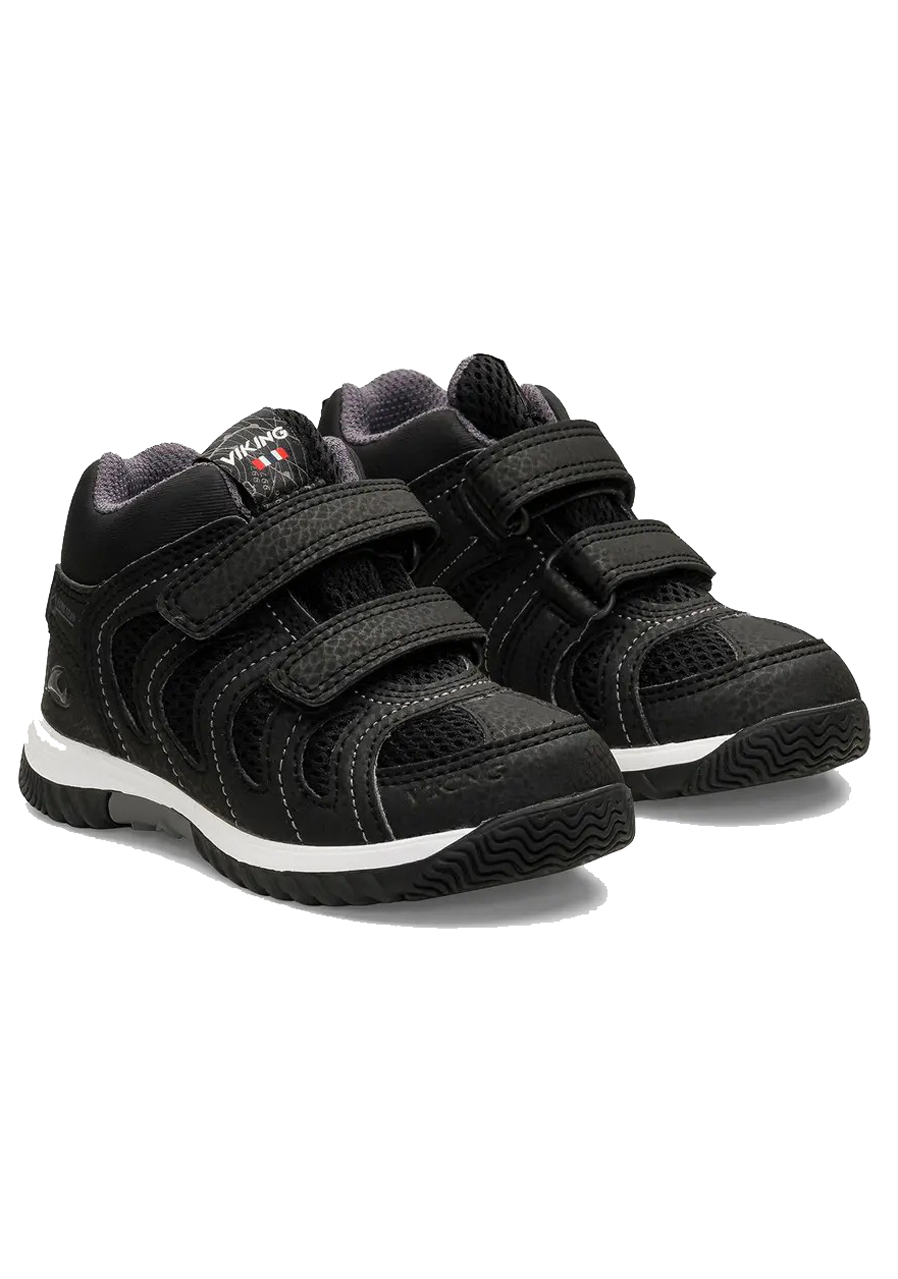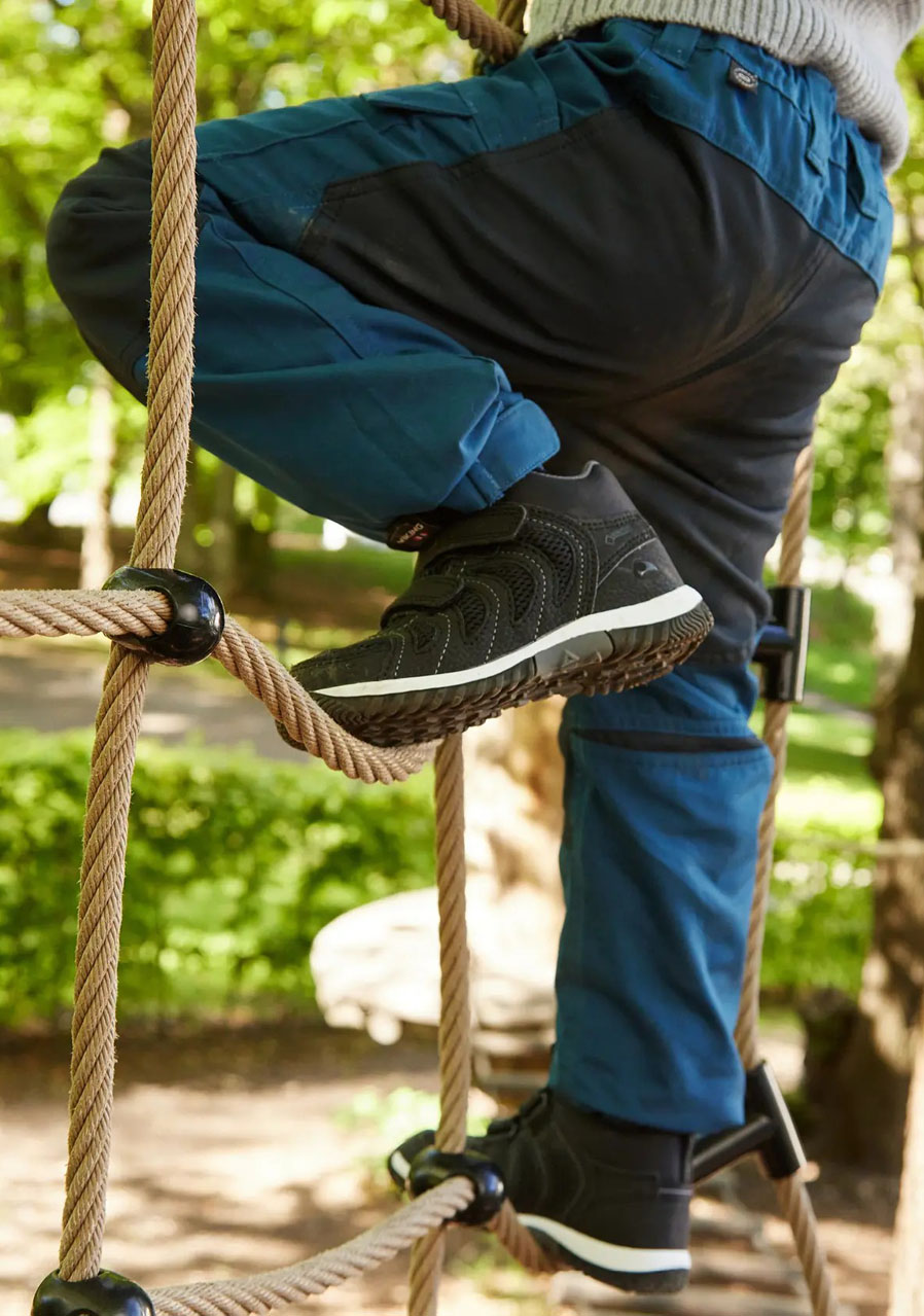 Středně vysoký střih poskytuje dostatečnou oporu kotníku, zatímco zesílená špička a pata zvyšují odolnost vůči nárazům. Protiskluzová podrážka se spolehlivě přizpůsobí různým typům terénu. Praktické zapínání na suchý zip a elastické rychlošněrování usnadňuje obouvání i menším dětem.