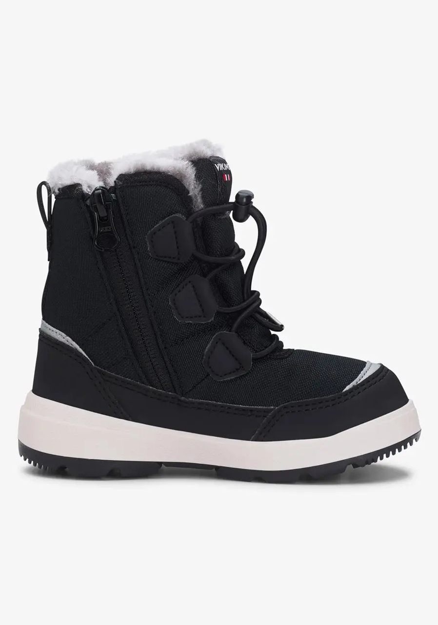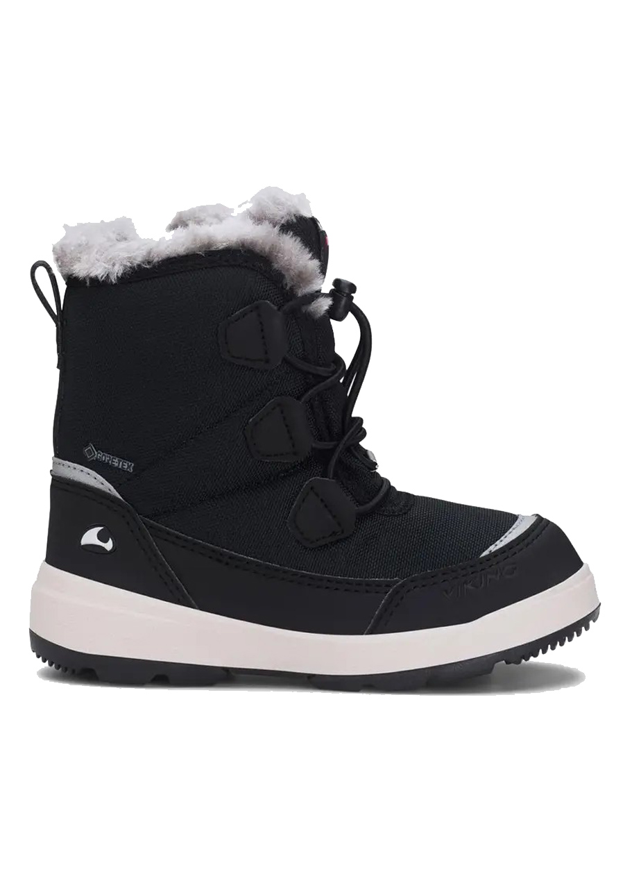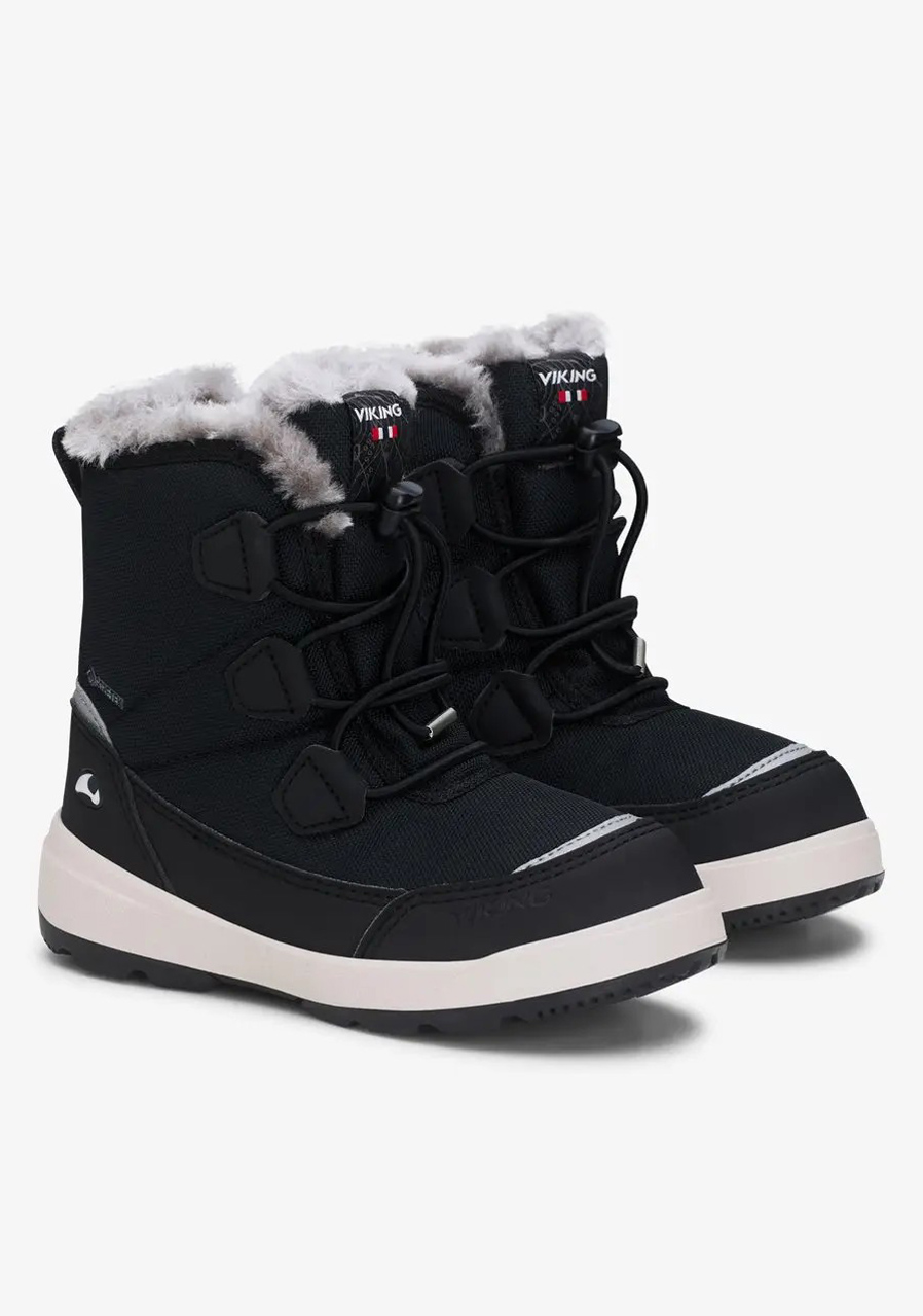 Zimní dětské boty Viking Montebello High GTX Warm v klasickém černém provedení Black jsou ideální volbou pro chladné a zasněžené dny. Díky vysokému střihu, zateplené konstrukci a nepromokavé GORE-TEX® membráně poskytují vynikající ochranu před mrazem, sněhem i vlhkem – perfektní na každodenní nošení i delší pobyt venku.
