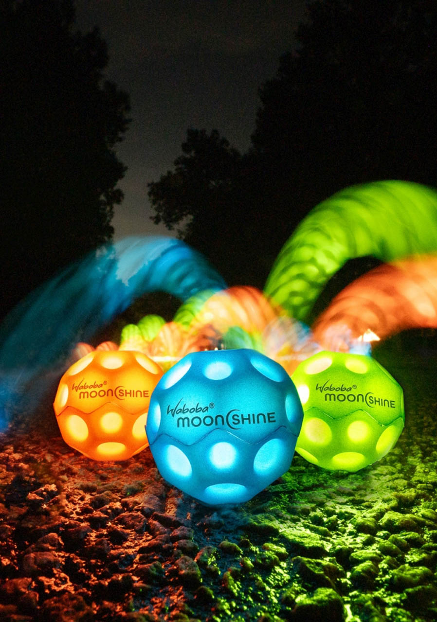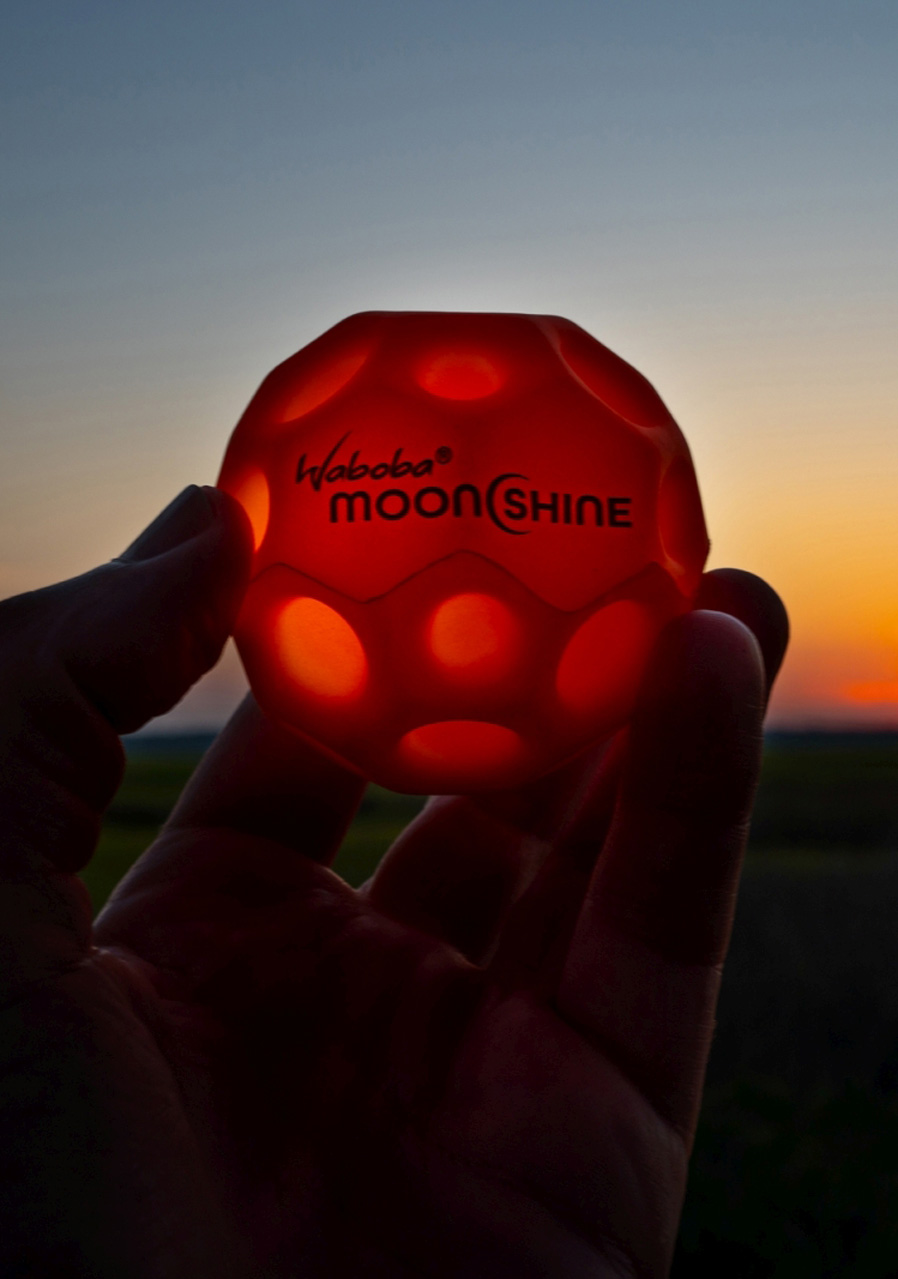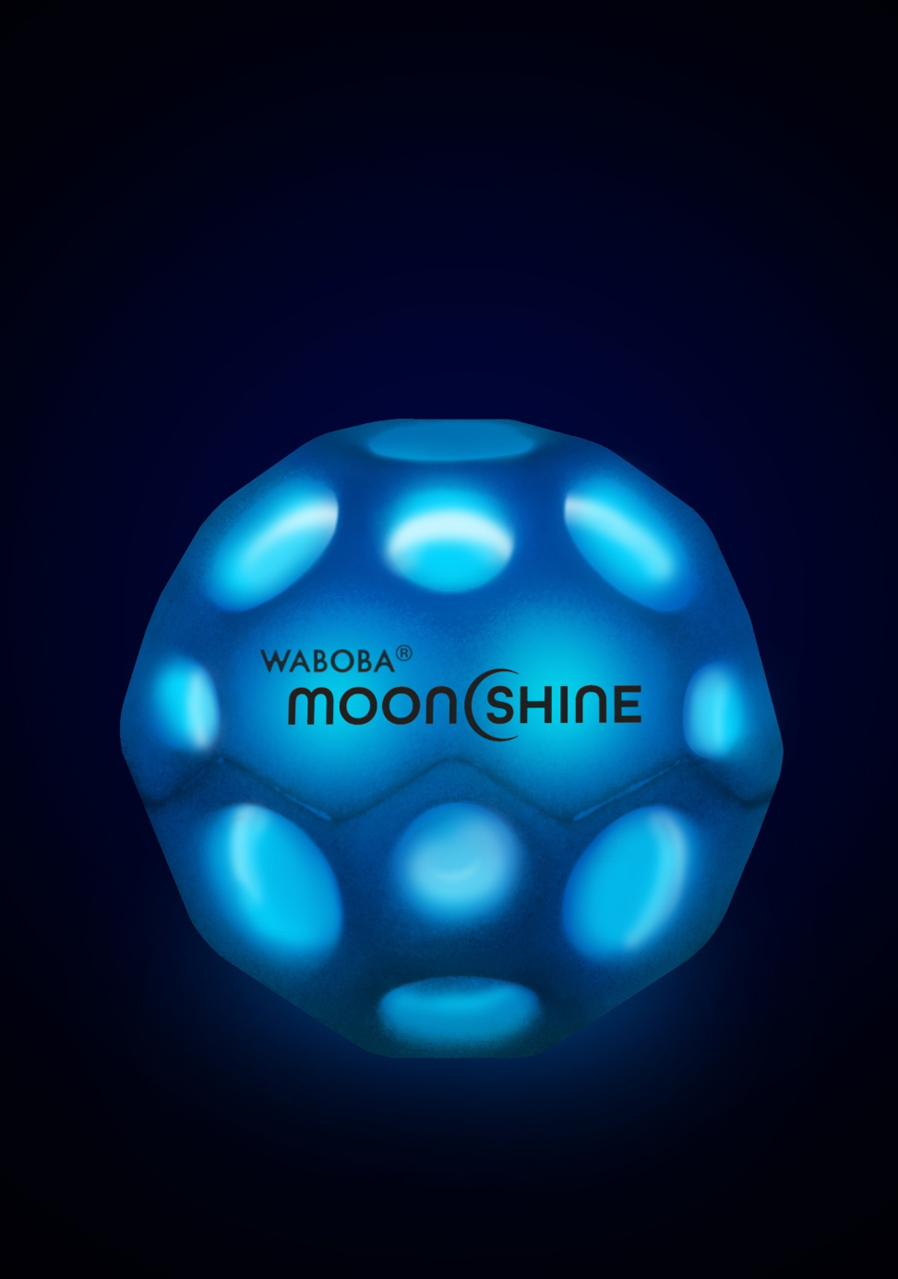 Hyperskákavý míček Waboba Moonshine v modrém provedení přináší ještě více zábavy – při odskoku se rozsvítí a díky tomu je hra atraktivní i za šera nebo v noci. Díky speciálnímu kráterovitému povrchu dosahuje extrémně vysokých a nepředvídatelných odskoků, které dělají každou hru dynamickou a plnou energie. Malý, lehký a skladný míček si snadno vezmete kamkoli – na zahradu, do parku nebo na dovolenou.