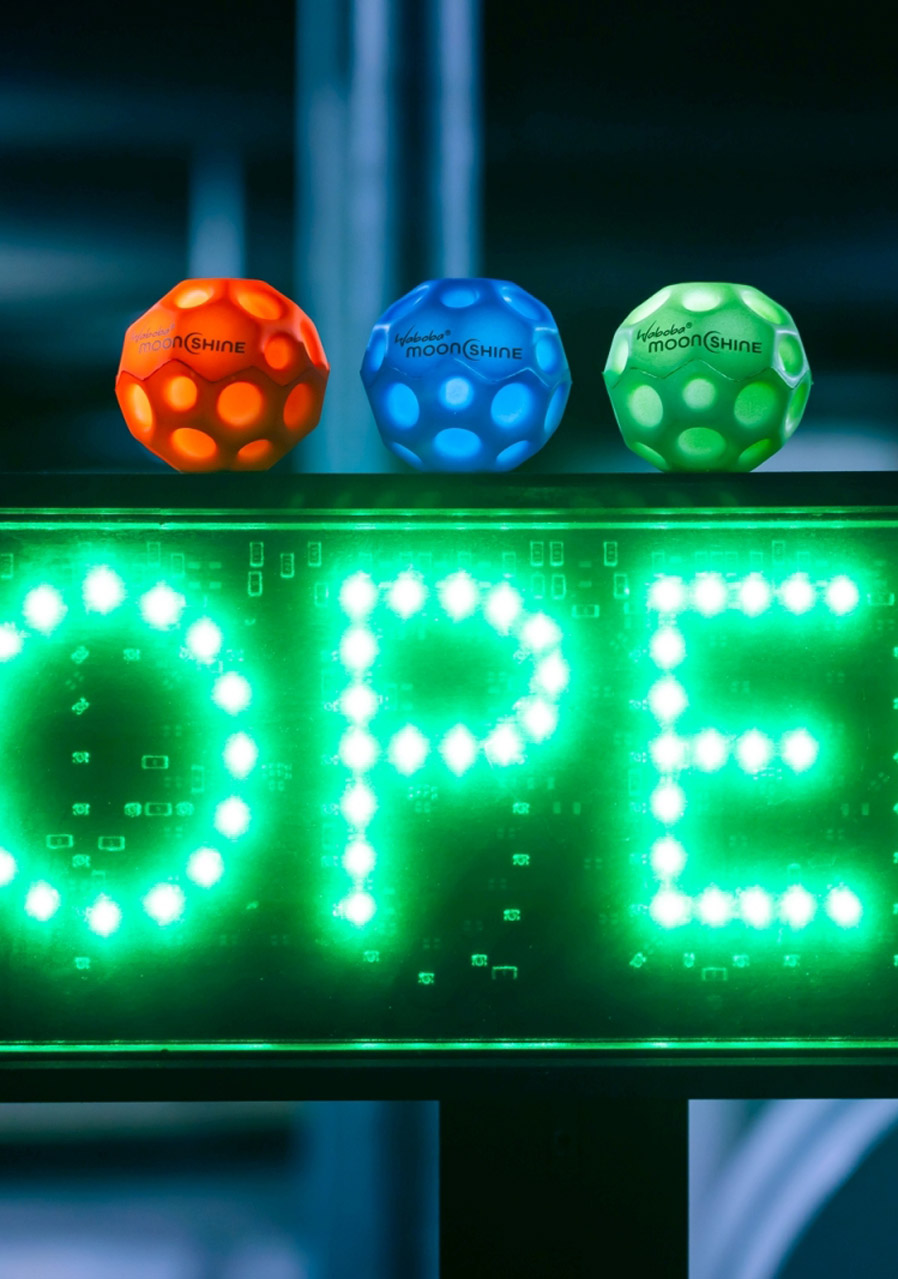 Vlastnosti: extrémně vysoký a nepředvídatelný odskok, světelný efekt při odskoku, lehký a přenosný